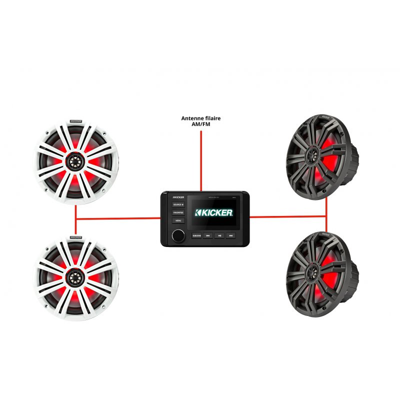 - KMC4 multimedijski izvor zvuka , lako čitljiv ekran u boji od 3”, kotačić za kontrolu do dvije audio zone na brodu, snaga veća od 100 watta, 4 kanala.