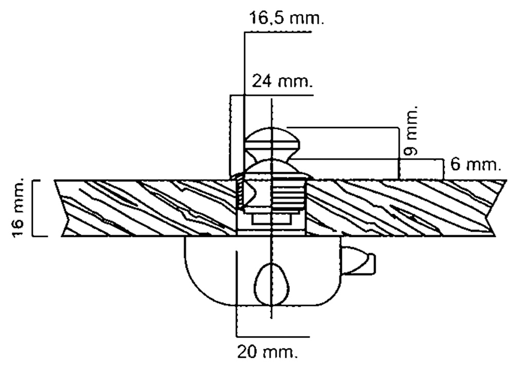 Push knob Shutter release for doors and drawers complete with white plastic lock. Thickness mm. 16
