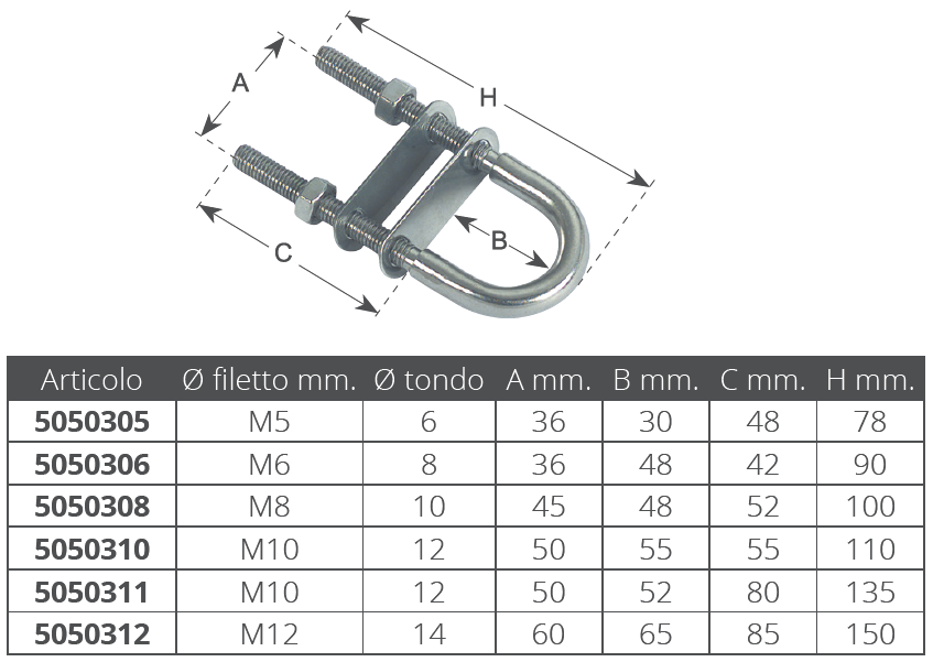 | Model | U VIJCI 31 AISI M10 H 110MM., U VIJCI AISI 316 M10 H 135 MM., U VIJCI AISI 316 M12 H 150 MM., U VIJCI AISI 316 M5 H 78MM., U VIJCI AISI 316 M6 H 90MM., U VIJCI AISI 316 M8 H 100MM. |