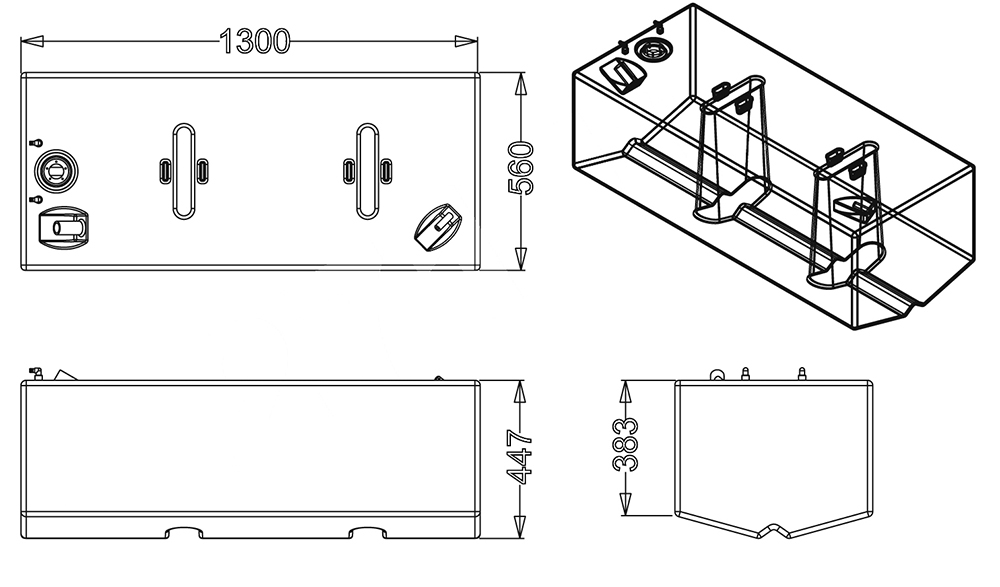 Kruti spremnici za gorivo izrađeni od polietilenskog kolor-neutralnog, imaju CE certifikat u skladu s Direktivom 94/25 / EC prema 10088. Opremljeni su senzorom razine i univerzalnim 10-180 ohmom 240-33 ohm, umetcima za otvaranje Ø mm otvora. Ø 16 mm i plovak. 12. Svaki spremnik se pojedinačno testira.