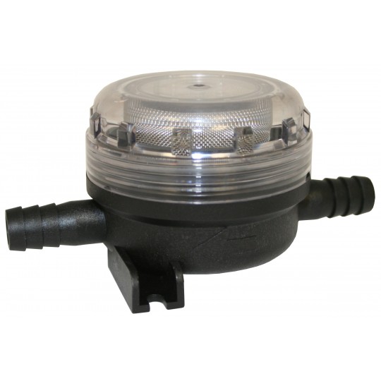 Filter s 20 očica po kvadratnom inču, linijski (otvori od približno 0,8 mm) s ulaznim i izlaznim priključcima cijevi od 19 mm (3/4″).