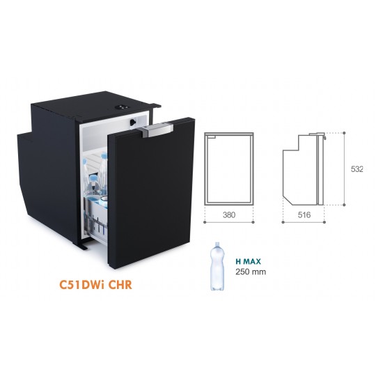 Proizvedeno s debljim, ali lakšim vratima istog otiska i potpunim udubljenjem, s glatkim i elegantnim bočnim profilom od 42 mm. S mat crnom pločom i mekom na dodir, otpornom na ogrebotine završnom obradom. Chromelock sustav omogućuje sigurno zaključavanje vrata čak i tijekom intenzivne upotrebe plovila. Ručka vrata opremljena je inovativnim integriranim sustavom ‘položaja ventilacije’, koji omogućuje djelomično otvaranje tijekom razdoblja neaktivnosti. Ova značajka ne samo da sprječava stvaranje plijesni i neželjenih mirisa, već i doprinosi optimalnom skladištenju vaših namirnica. Kompletno s LED svjetlom.